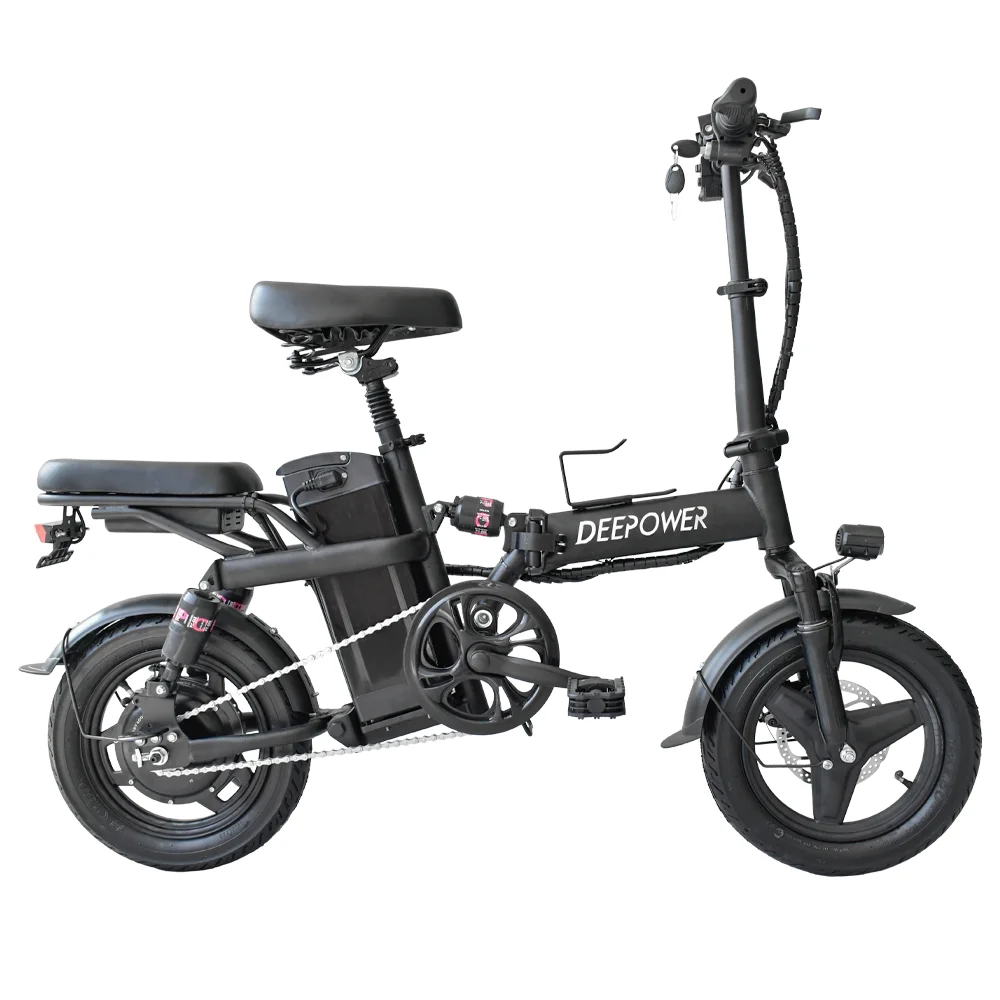 SPECIFICATIONSBrand Name: DEEPOWERCertification: ceFolded: YesFrame Material: SteelHign-concerned Chemical: NoneMax Speed: <25km/hModel Number: K300Motor: BrushlessOrigin: Mainland ChinaPower Source: Lithium BatteryPower Supply: Lithium BatteryRange per Power: 10 - 30 kmRated Passenger Capacity: Two SeatStyle: Standard TypeVoltage: 48VWattage: < 200WWheel Size: 14Inches 350mmDEEPOWER FACTORY E-Bikes – Ride the Future, GloballyWe are DEEPOWER E-Bikes,...