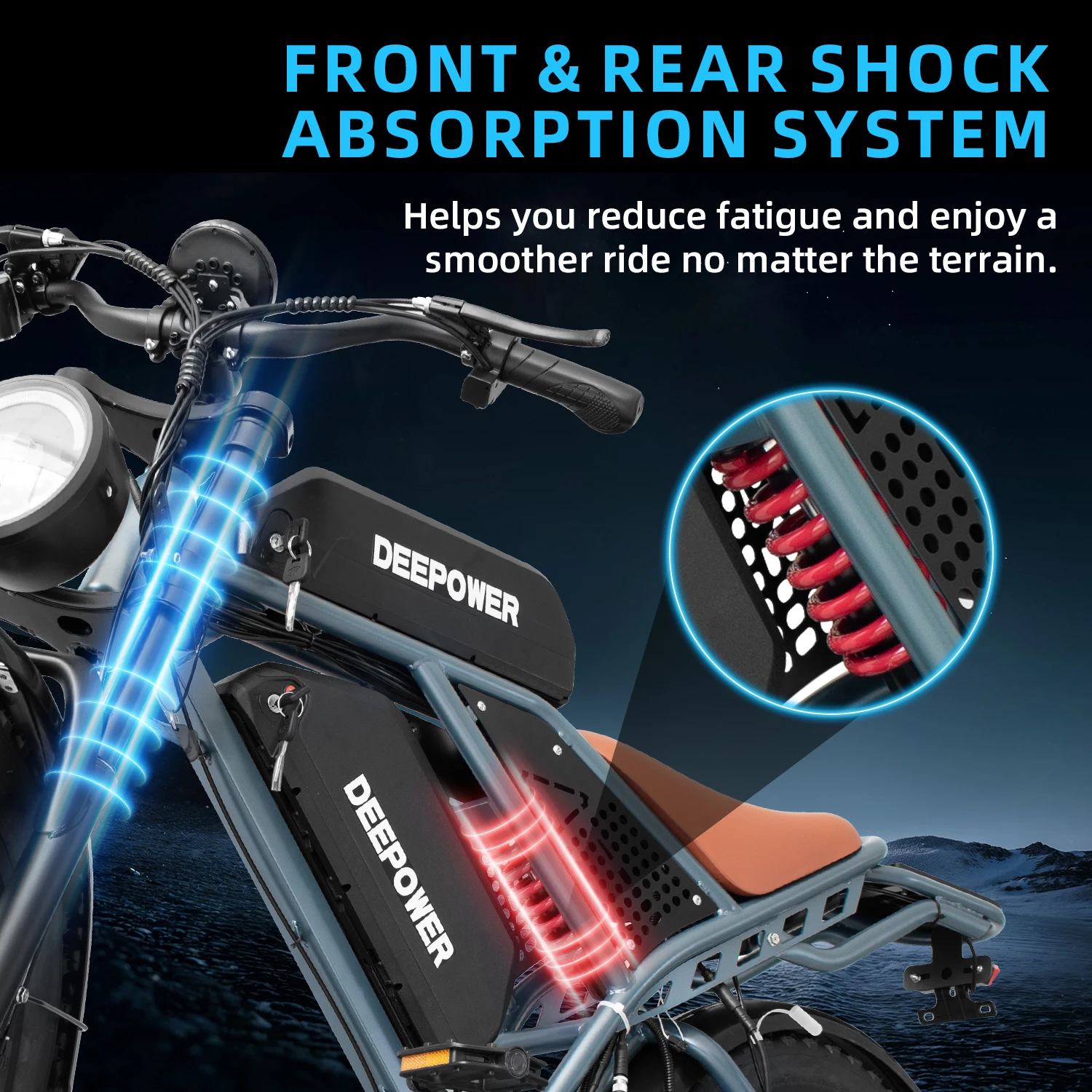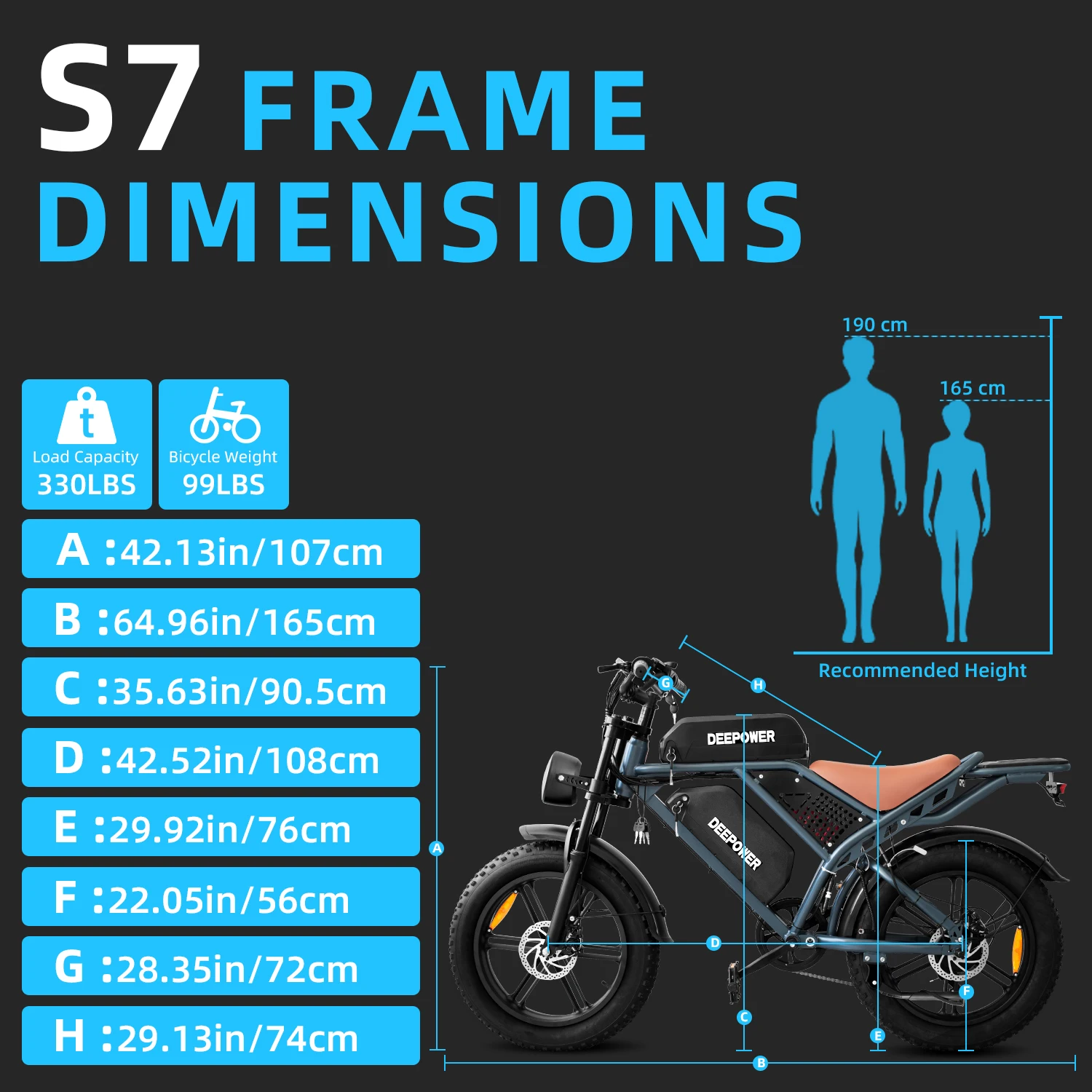 SPECIFICATIONSBrand Name: DEEPOWERCertification: ceFolded: NoFrame Material: Aluminum AlloyHign-concerned Chemical: NoneMax Speed: <25km/hModel Number: S7Motor: BrushlessOrigin: Mainland ChinaPower Source: Lithium BatteryPower Supply: Lithium BatteryRange per Power: > 60 kmRated Passenger Capacity: Two SeatStyle: Standard TypeVoltage: 48VWattage: < 200WWheel Size: 20“DEEPOWER FACTORY E-Bikes – Ride the Future, GloballyWe are DEEPOWER E-Bikes, a...