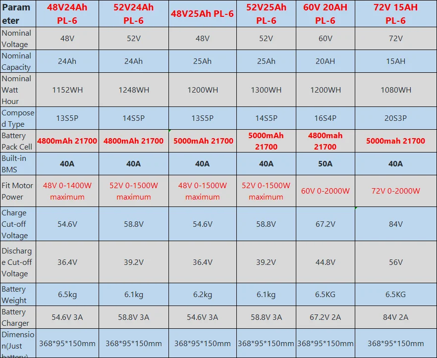 Polly 48V 25AH Ebike Battery Downtube 52V 24AH 72v Electric Battery BMS Original 21700 Lithium lon Battery 1000W 18650 Cell