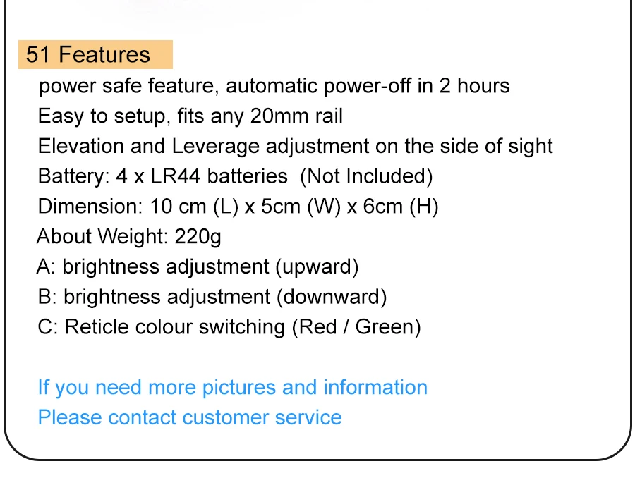 SPECIFICATIONSBrand Name: BestsightFunction: Red DotHign-concerned Chemical: NoneModel Number: 558+G43Origin: Mainland ChinaSight type: Tactical foldingType: RIFLE