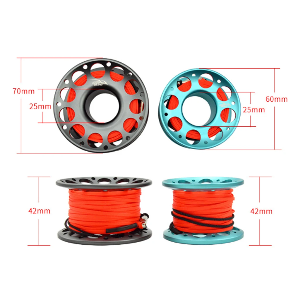 SPECIFICATIONSBrand Name: APWIKOGERHign-concerned Chemical: NoneOrigin: Mainland China 15m 30m Aviation Aluminum Scuba Diving Spool Finger Reel with Stainless Steel Double Ended Hook Underwater Fishing Cave Dive Equipment Feature: Aluminum wire wheel, flat wire; Rotary connector; 316 stainless steel double-end hook. Specification: Material: T6061 Aviation + high strength polyester fiber (rope)...